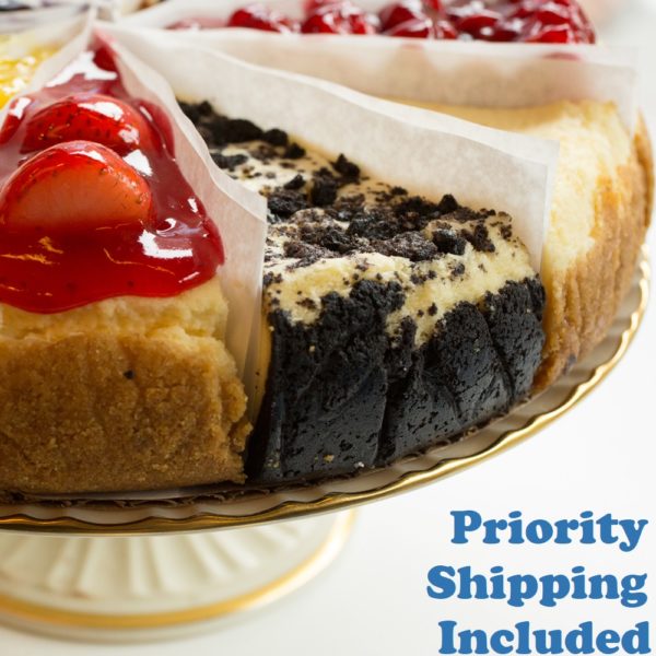 Cake is 10″, PRECUT into 12 slices- Serves 12 If you can’t choose just one flavor, or want to give the gift of a myriad of delectable flavors- we suggest our sampler! Each sampler always includes six of the classics- plain, strawberry, blueberry, cherry, raspberry, and pineapple. The other six flavors vary by season, and may include nuts. FedEx usually guarantees the package by 10:30AM. Packages do not require a signature, and are left at the door. Please ensure that someone will be available to bring the package in in a timely manner, and able to remove it from the FedEx box, following the instructions inside. Please check your email for more detailed tracking information. All cakes are baked and topped to order, packaged with love, and shipped priority overnight. Shipped cakes need special packaging, therefore, the cake toppings will appear slightly different than they do in the photos.